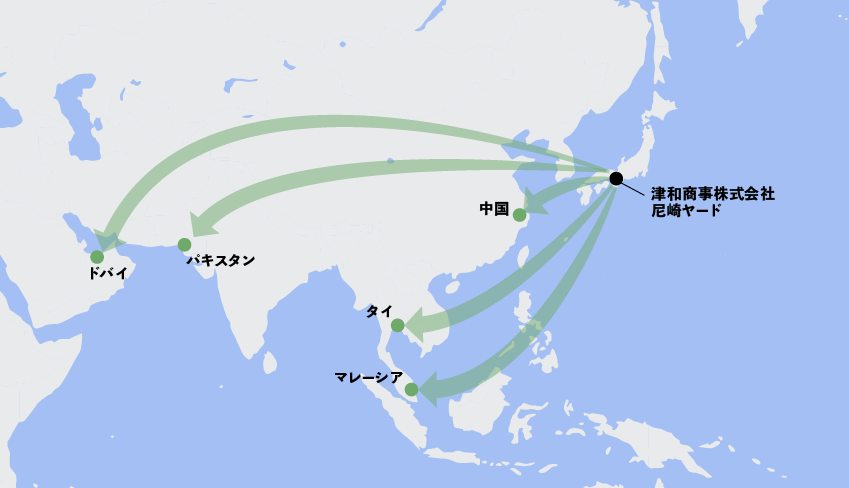 わたしたちは、マレーシア、タイ、中国、パキスタン、ドバイなど、さまざまな国々への豊富な輸出実績がございます。創業以来、スクラップの買取と輸出入業務を専門に行ってきたことで、取引先との強固かつ安定した信頼関係を築き、安定的な原材料の供給を確保しています。また、徹底した品質管理、円滑な輸送と物流の運営に加え、国際物流や貿易のルール・法令に関する高度な専門知識を有しており、さまざまなリスクにも対応しています。これまで培った豊富なノウハウと経験を活かし、尼崎の一員として地域社会に貢献し、地域経済の活性化を図るとともに、尼崎を拠点にグローバル市場での競争力をさらに高めていきます。